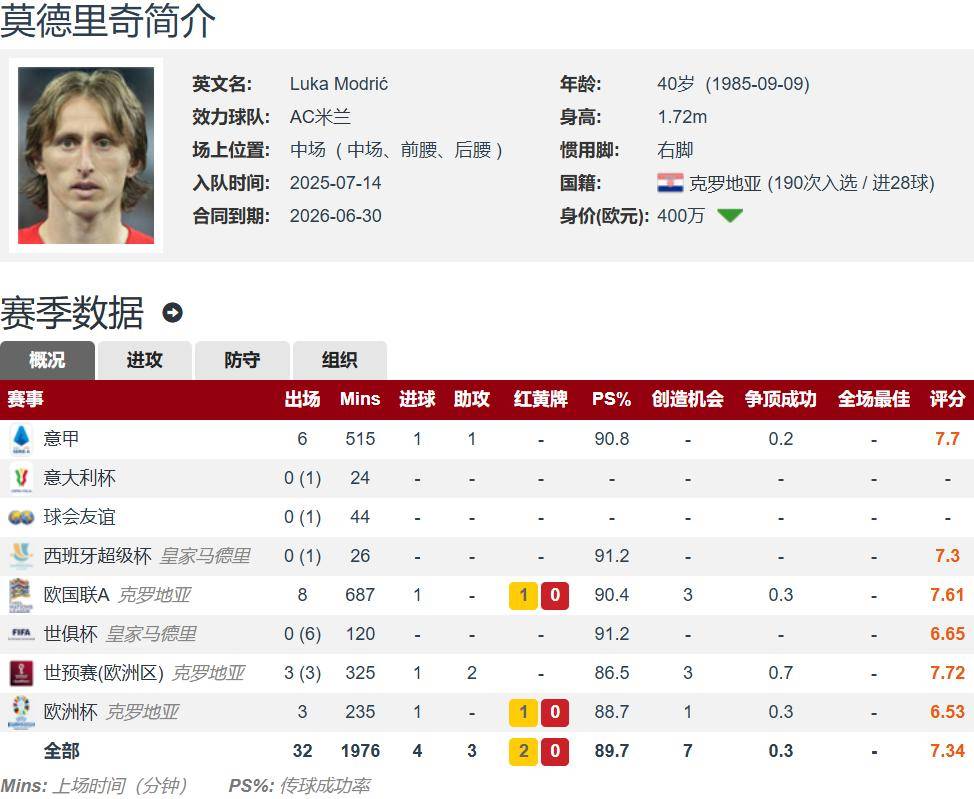 在欧洲区世界杯预选赛的L组第8轮,克罗地亚3-0击败直布罗陀。前六轮拿下5胜1平,保持不败,以3分的领先和高达15个净胜球的优势领跑小组,基本锁定小组头名,直接晋级2026年美加墨世界杯的希望极大。截至目前,克罗地亚在6轮拿到16分排名第一,捷克7轮13分排第二,落后克罗地亚3分但净胜球却少了约15球。捷克只剩下最后一场小组赛,主场面对直布罗陀,因此克罗地亚几乎已经顺利迈入2026世界杯的门槛。届时40岁的莫德里奇将以克罗地亚队长的身份再次出征世界杯。莫德里奇本赛季以免签方式加盟意甲豪门AC米兰,成为球队的绝对核心。前6轮意甲他全部首发,贡献1球1助攻。本届世预赛他出战6场,其中3次首发,贡献1球2助攻。莫德里奇将继续在AC米兰保持状态,以良好姿态迎接2026年美加墨世界杯。魔笛与梅西一起,这也很可能成为他世界杯生涯的最后一舞。